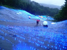 梅雨明けが待ち遠しい7月26日 あいにくの雨降りの中、日帰りツアーで アパリゾート上越妙高サマーイルミネーションに参加しました。 今年で三年目! 昨年の130万球から今年は160万球と内容もパワーアップされ、新演出登場という事でしたので着く前から楽しみでした。 18時より点灯され、世界最大級300㍍の「虹龍の光の大トンネル」を超え、気分も華やいだところで龍の誕生をテーマにした「龍の巣窟」光と音のショーを楽しむ。 今年新たに登場した「風神~起承編」・「雷神~転結編」の2つの映像でつづる3Dウォータープロジェクションマッピングが楽しめるところでしたが、風雨が強かった為ハーフコースで引き返すことに・・(>_<) その他「天空の花畑」やLEDフラワーの光の花畑「幻想庭園」など・・天気が良ければ最高に楽しむ事が出来ますので是非一度足を運んでは?・・・